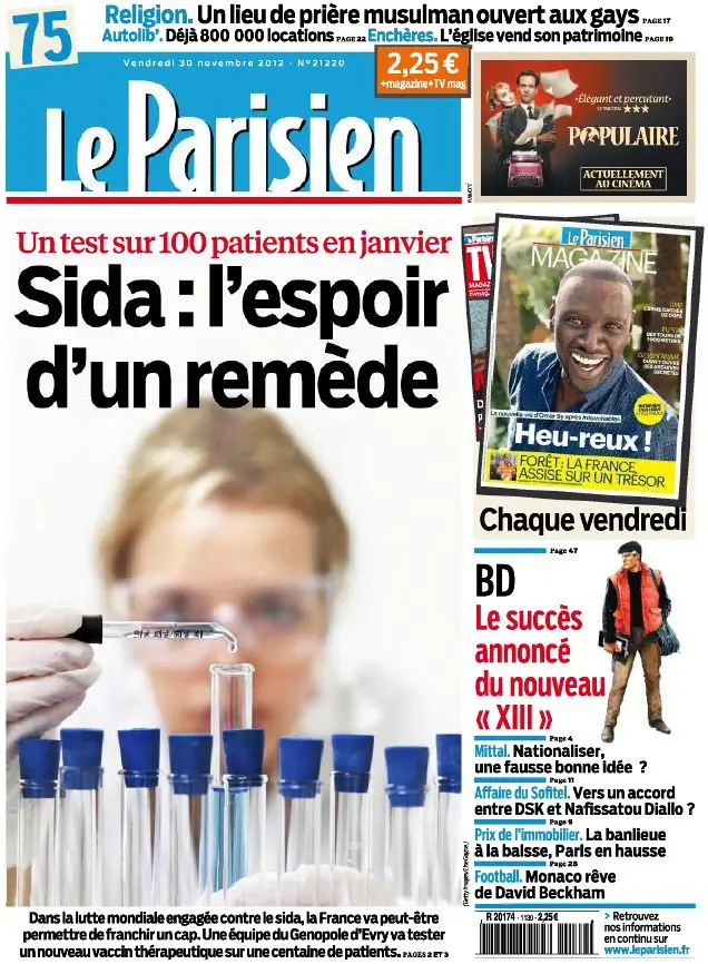 Le Parisien + Cahier Paris du Vendredi 30 Novembre 2012