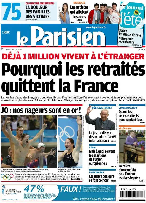 Le Parisien + Cahier Paris du Lundi 30 Juillet 2012
