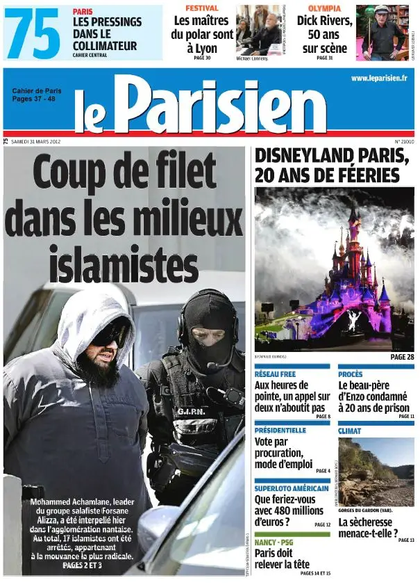 Le Parisien + Cahier Paris du Samedi 31 Mars 2012