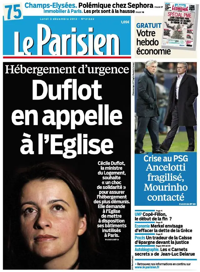 Le Parisien + Cahier Paris du Lundi 3 Décembre 2012
