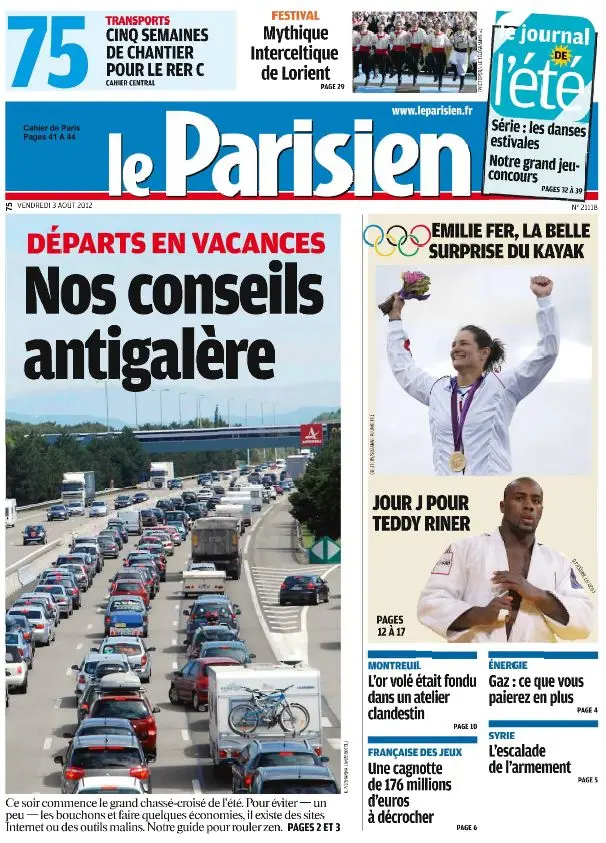 Le Parisien + Cahier Paris du Vendredi 3 Aout 2012