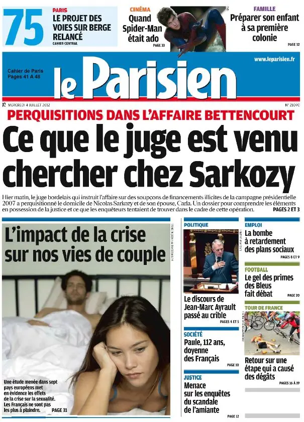 Le Parisien + Cahier Paris du Mercredi 4 Juillet 2012