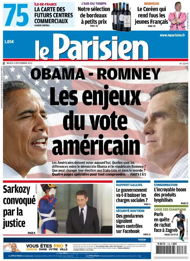 Le Parisien + Cahier Paris du Mardi 6 Novembre 2012