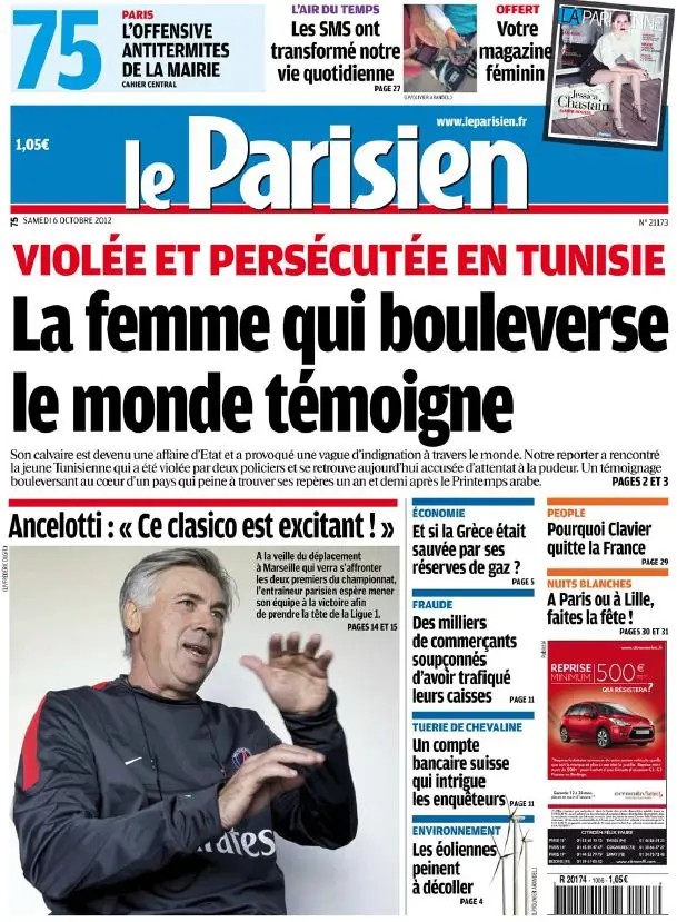 Le Parisien + Cahier Paris du Samedi 6 Octobre 2012