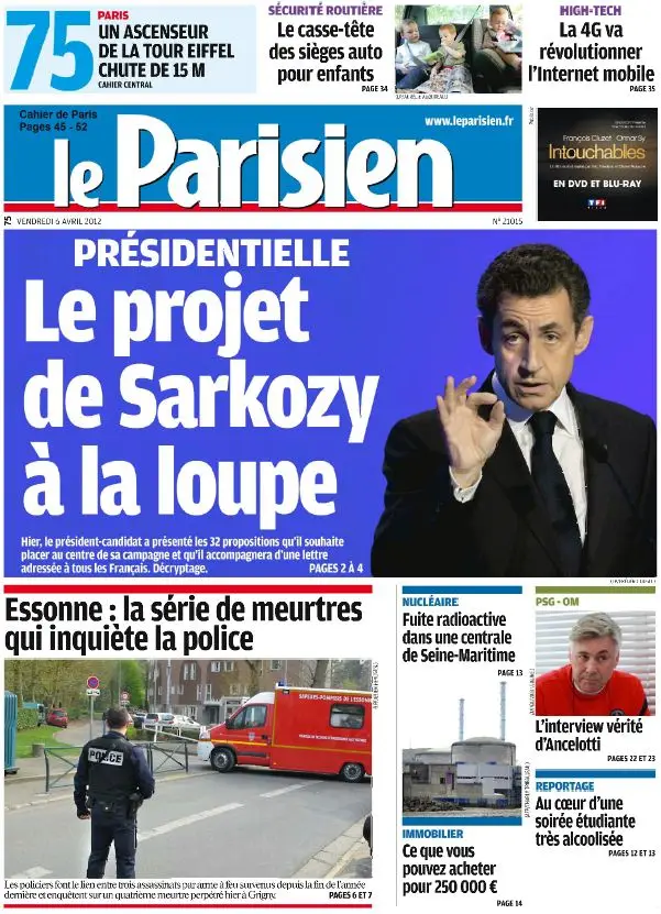 Le Parisien + Cahier Paris du Vendredi 6 Avril 2012