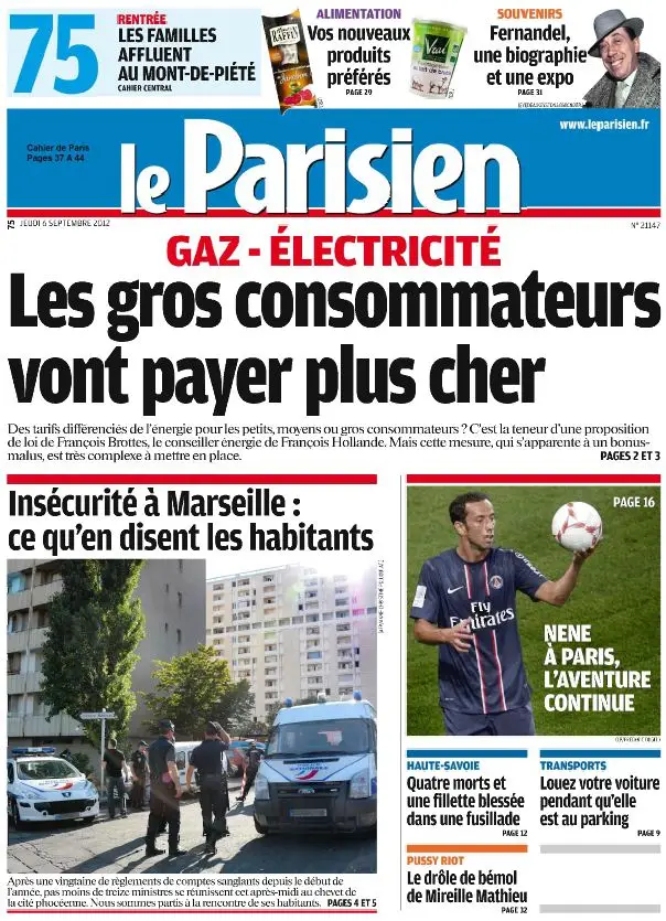 Le Parisien + Cahier Paris du Jeudi 6 Septembre 2012