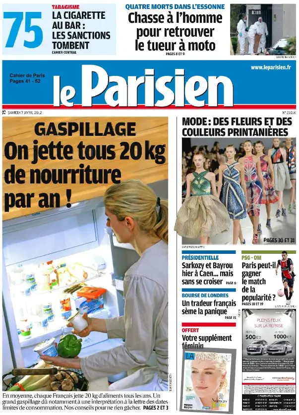 Le Parisien + Cahier Paris du Samedi 7 Avril 2012