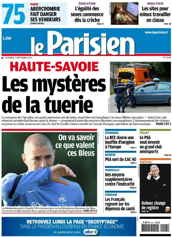 Le Parisien + Cahier Paris du Vendredi 7 Septembre 2012