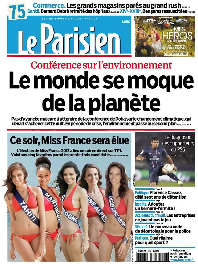 Le Parisien + Cahier Paris du Samedi 8 Décembre 2012