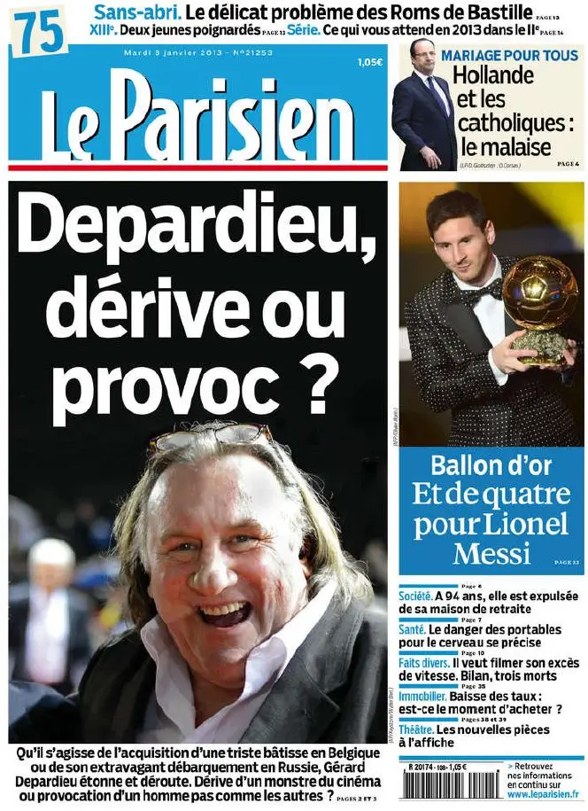 Le Parisien + Cahier Paris du Mardi 8 Janvier 2013