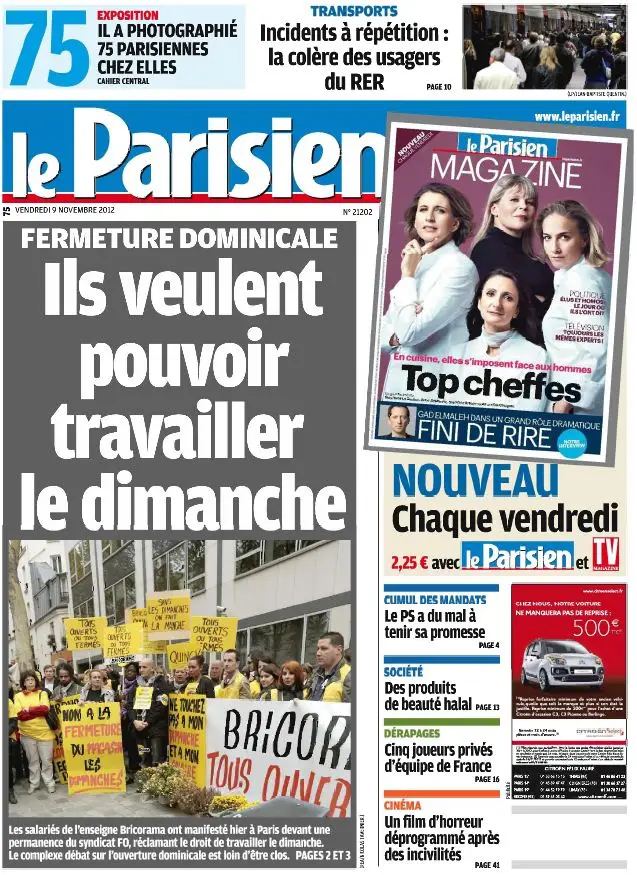 Le Parisien + Cahier Paris du Vendredi 9 Novembre 2012