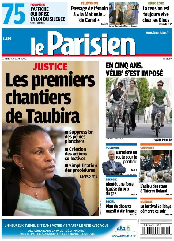 Le Parisien & Cahier Paris du Vendredi 22 Juin 2012