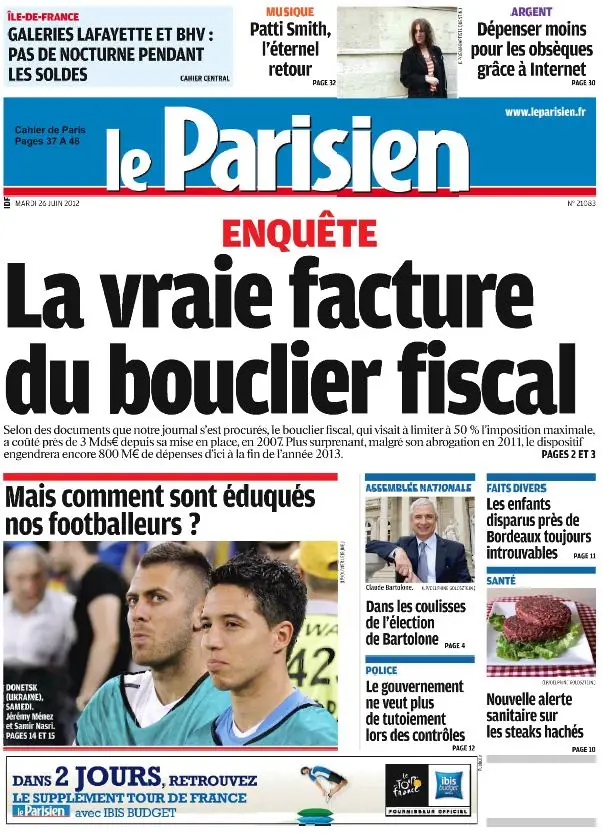 Le Parisien & Cahier Paris du Mardi 26 Juin 2012