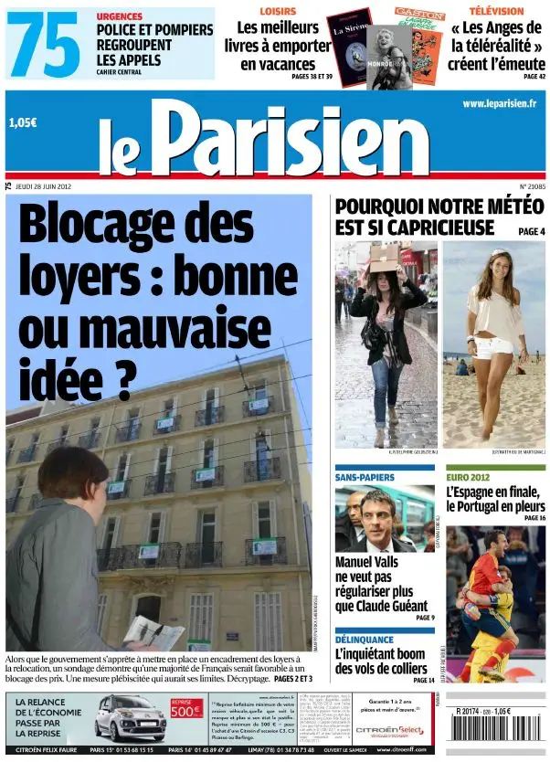 Le Parisien & Cahier Paris du Jeudi 28 Juin 2012