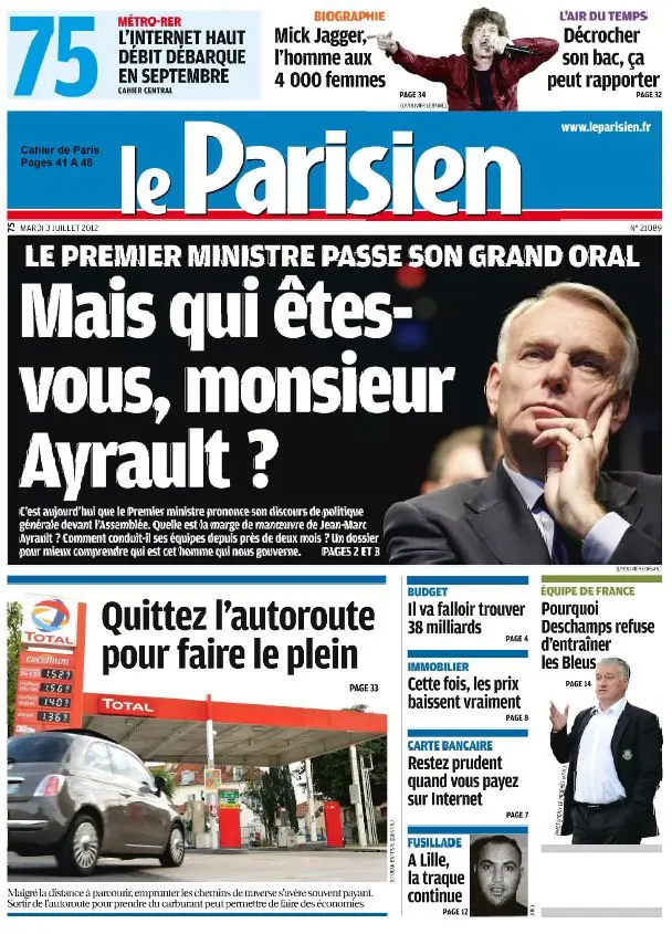 Le Parisien + Cahier Paris du Mardi 3 Juillet 2012