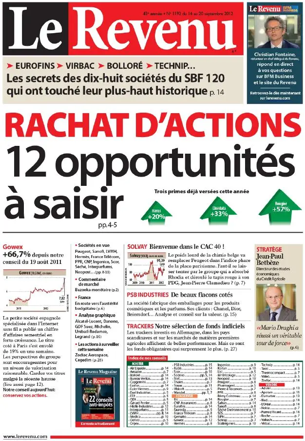 Le Revenu Hebdo Bourse 1192 - 14 au 20 Septembre 2012