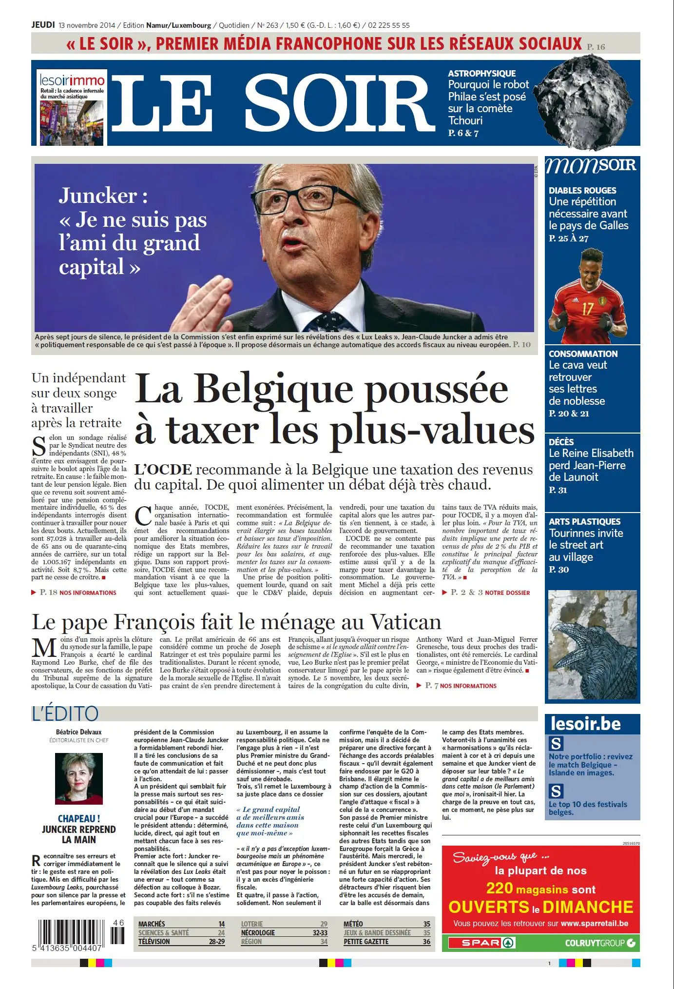 Le Soir du 13 Novembre 2014