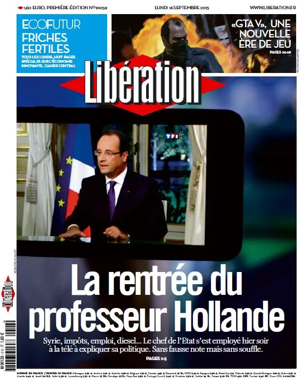 Libération du Lundi 16 Septembre 2013