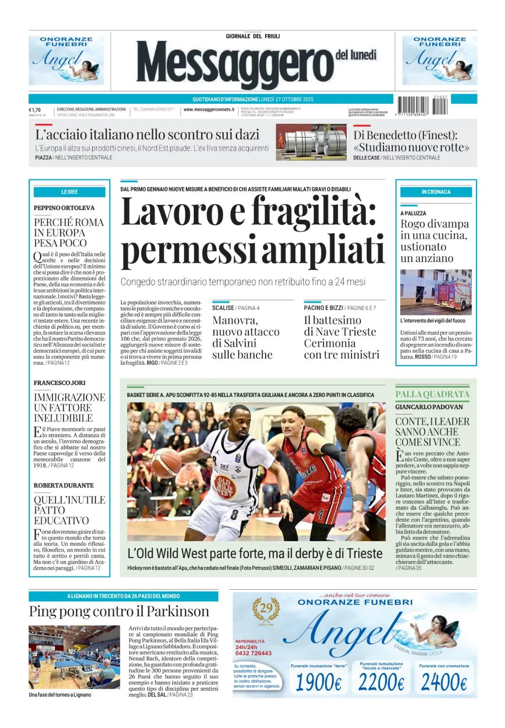 Messaggero Veneto Udine - 27 Ottobre 2025
