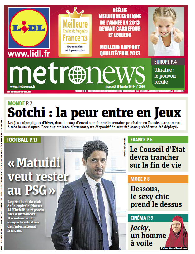 Metro [France - Par | Lil |Bor | Rhô | Pro | Côt | Nan | Ren | Gra | Tou | Lan], 29. January 2014