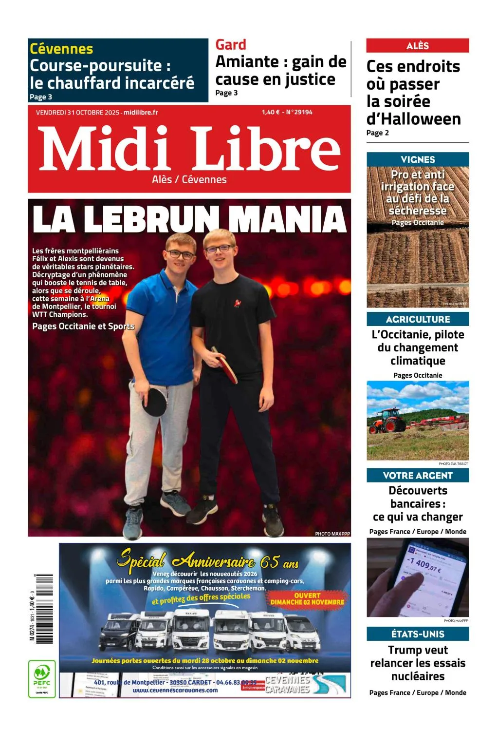 Midi Libre Ales - 31 Octobre 2025