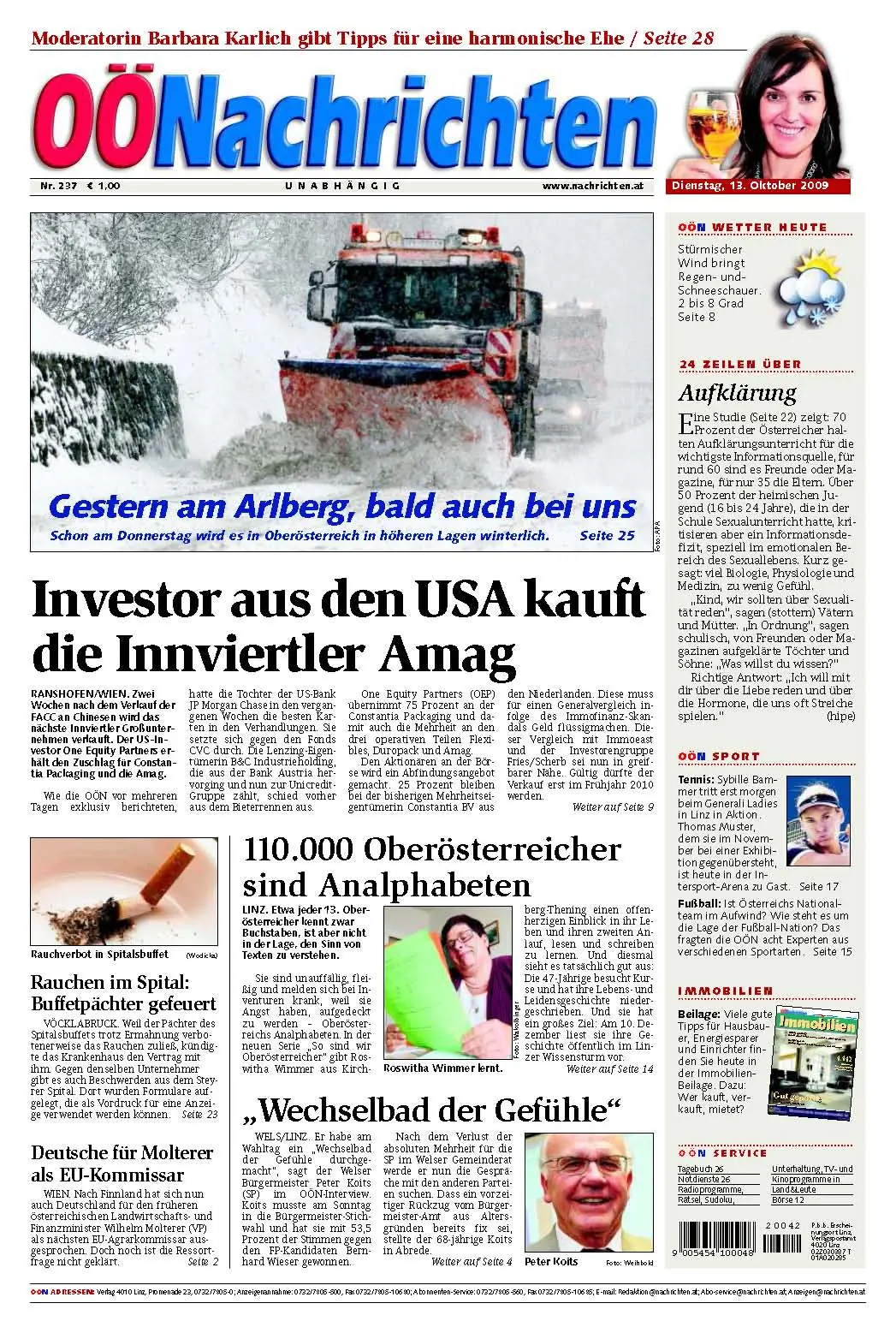 Oberoesterreichische Nachrichten vom 13. Oktober 2009