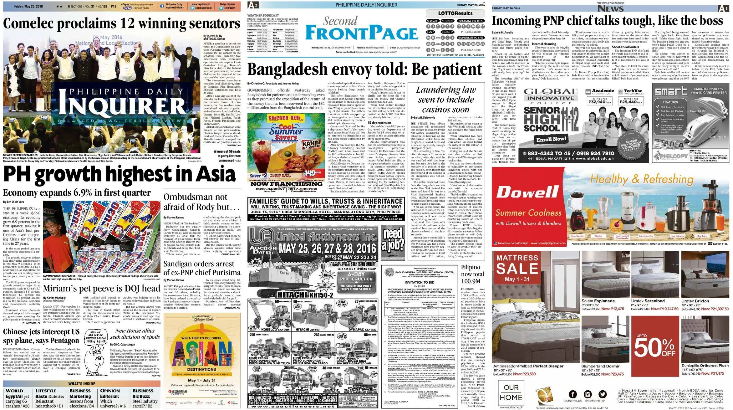 Philippine Daily Inquirer – May 20, 2016