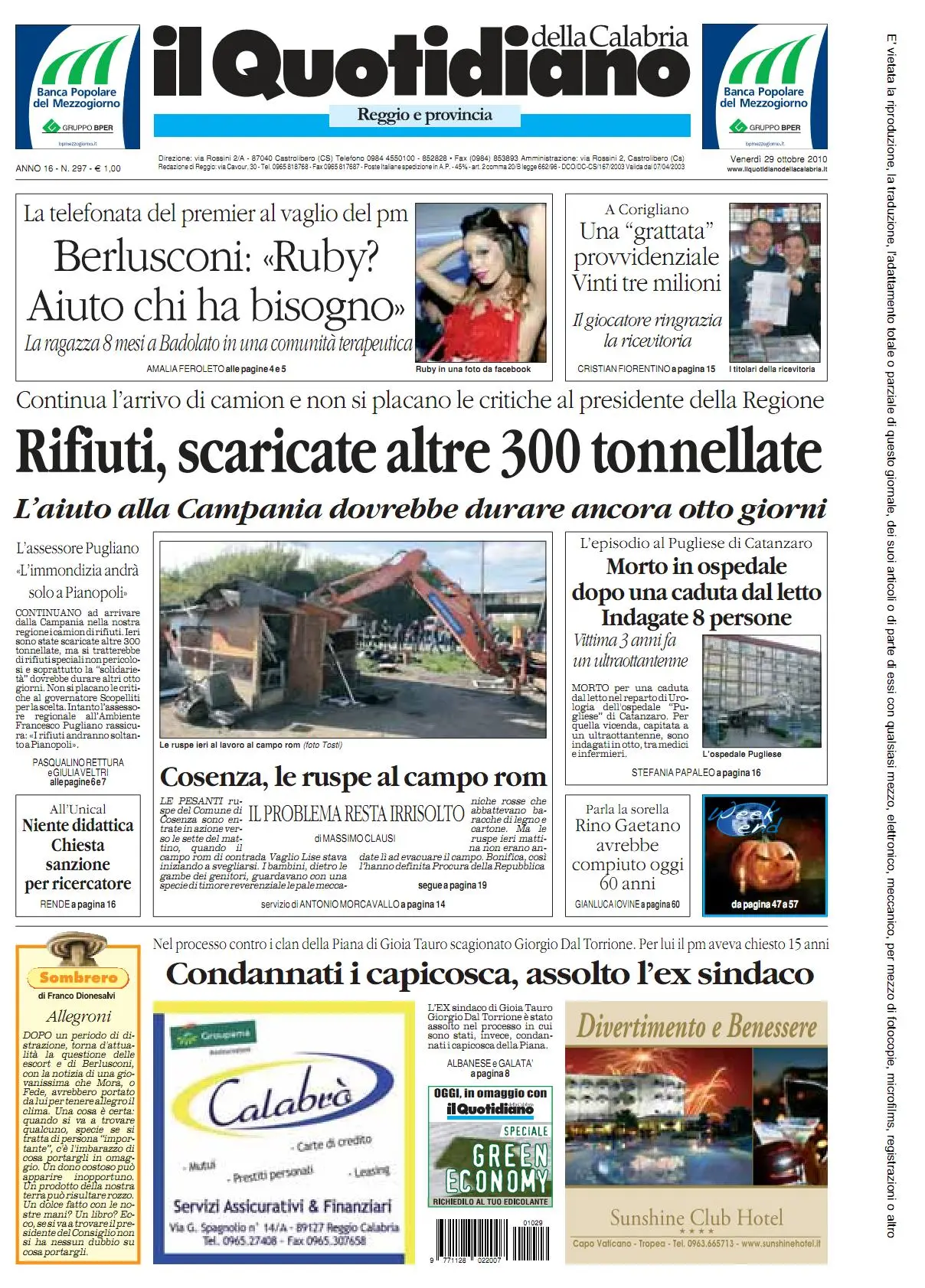 Quotidiano della calabria (29 - 10 - 2010)