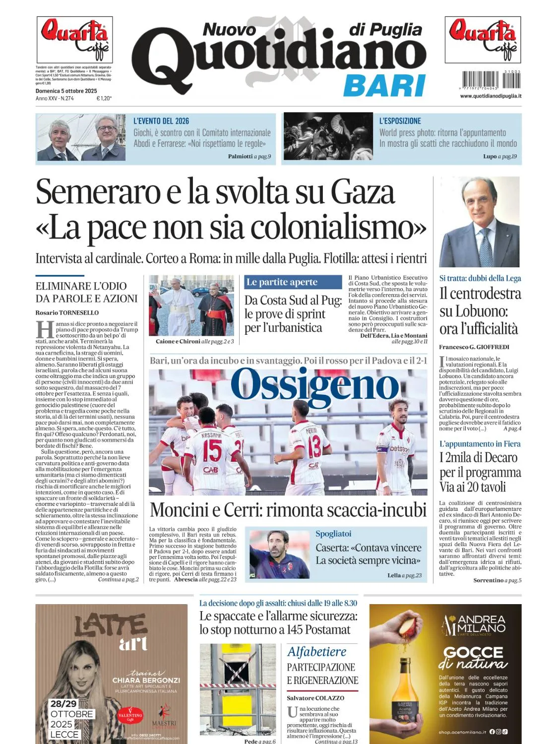 Quotidiano di Puglia Bari - 5 Ottobre 2025