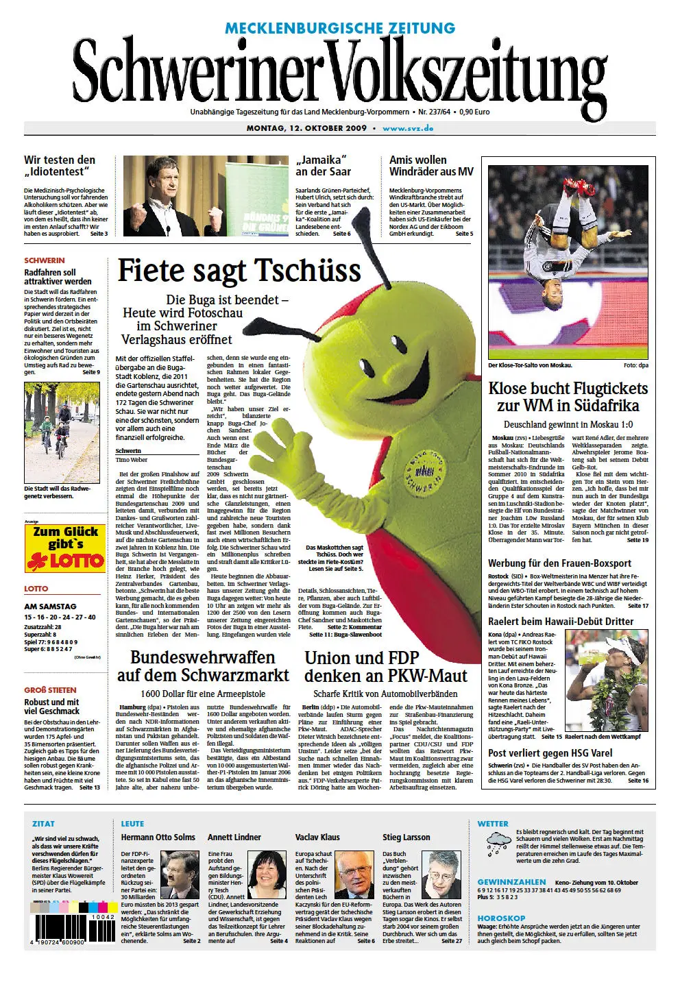 Schweriner Volkszeitung 12.10.2009 (Ausgabe Schwerin)