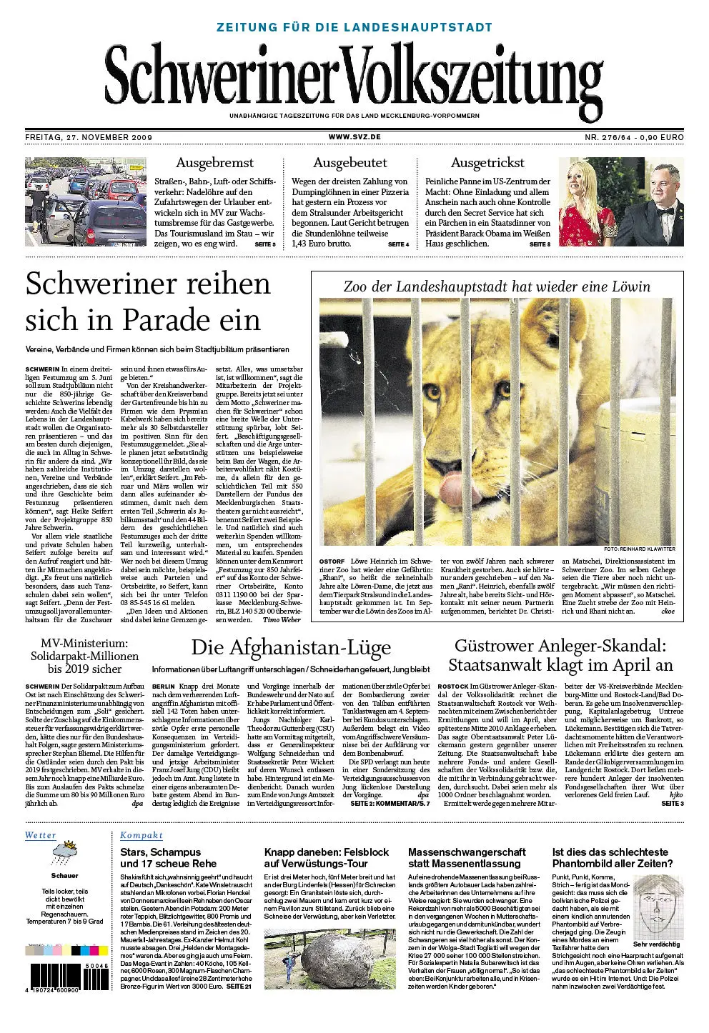 Schweriner Volkszeitung 27.11.2009 (Ausgabe Stadt Schwerin)