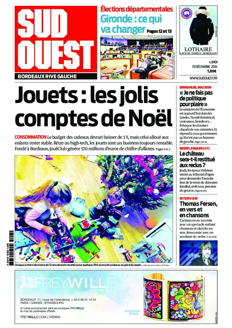 Sud Ouest (Bordeaux Rive Gauche) Du Lundi 15 Decembre 2014