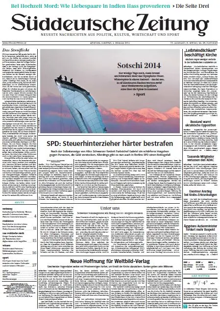 Süddeutsche Zeitung vom Dienstag, 04. Februar 2014