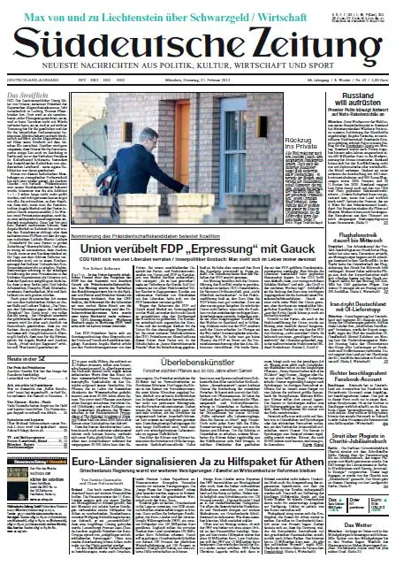Süddeutsche Zeitung vom Dienstag, 21. Februar 2012