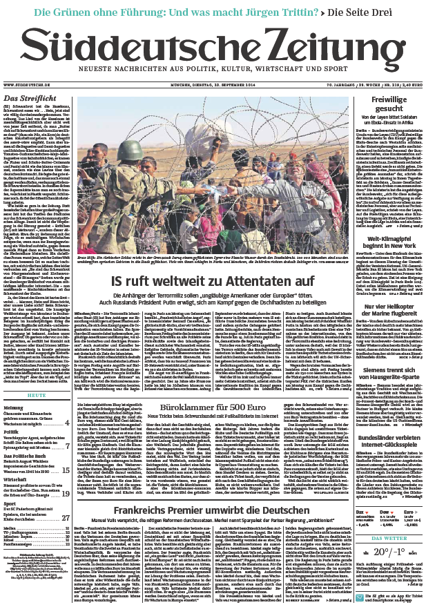 Süddeutsche Zeitung vom Dienstag, 23. September 2014