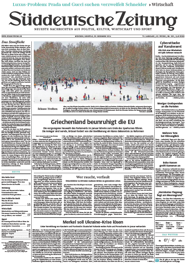 Süddeutsche Zeitung vom Dienstag, 30. Dezember 2014