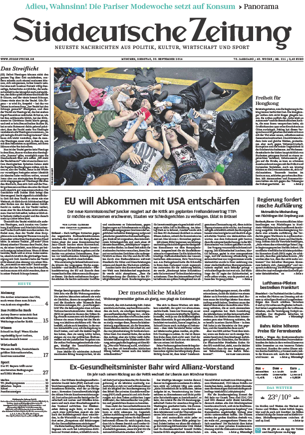 Süddeutsche Zeitung vom Dienstag, 30. September 2014