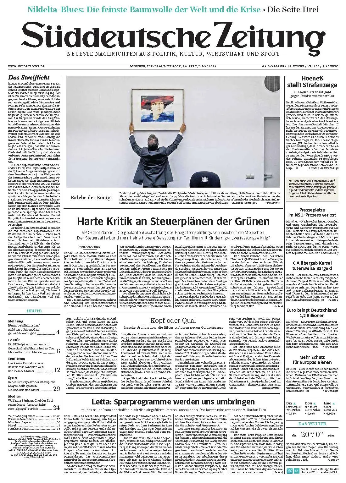 Süddeutsche Zeitung vom Dienstag/Mittwoch, 30./01. April/Mai 2013