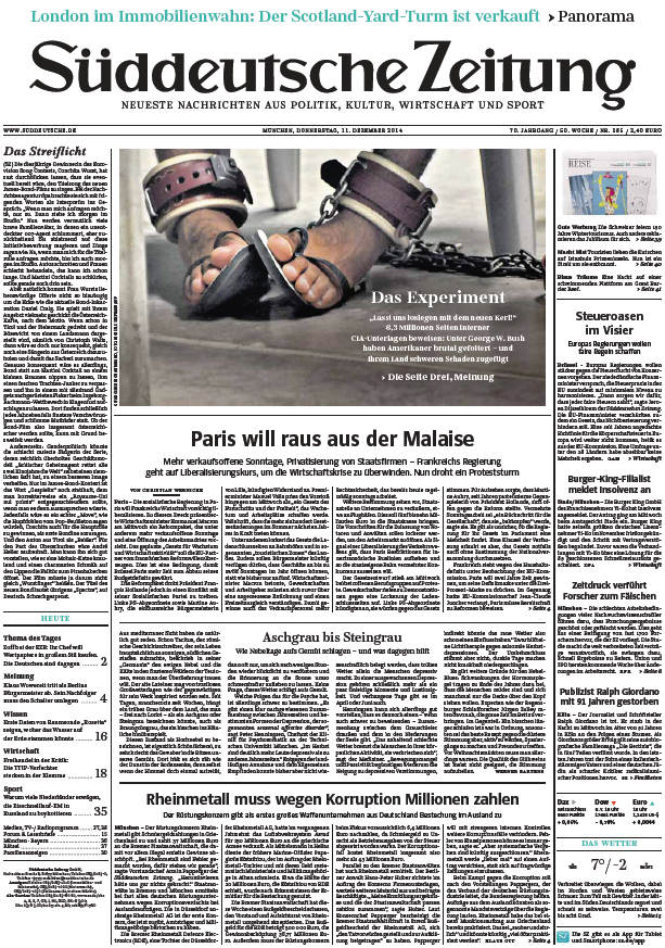 Süddeutsche Zeitung vom Donnerstag, 11. Dezember 2014