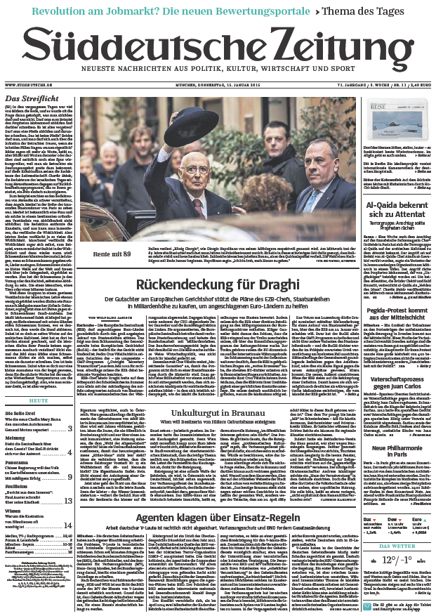Süddeutsche Zeitung vom Donnerstag, 15. Januar 2015