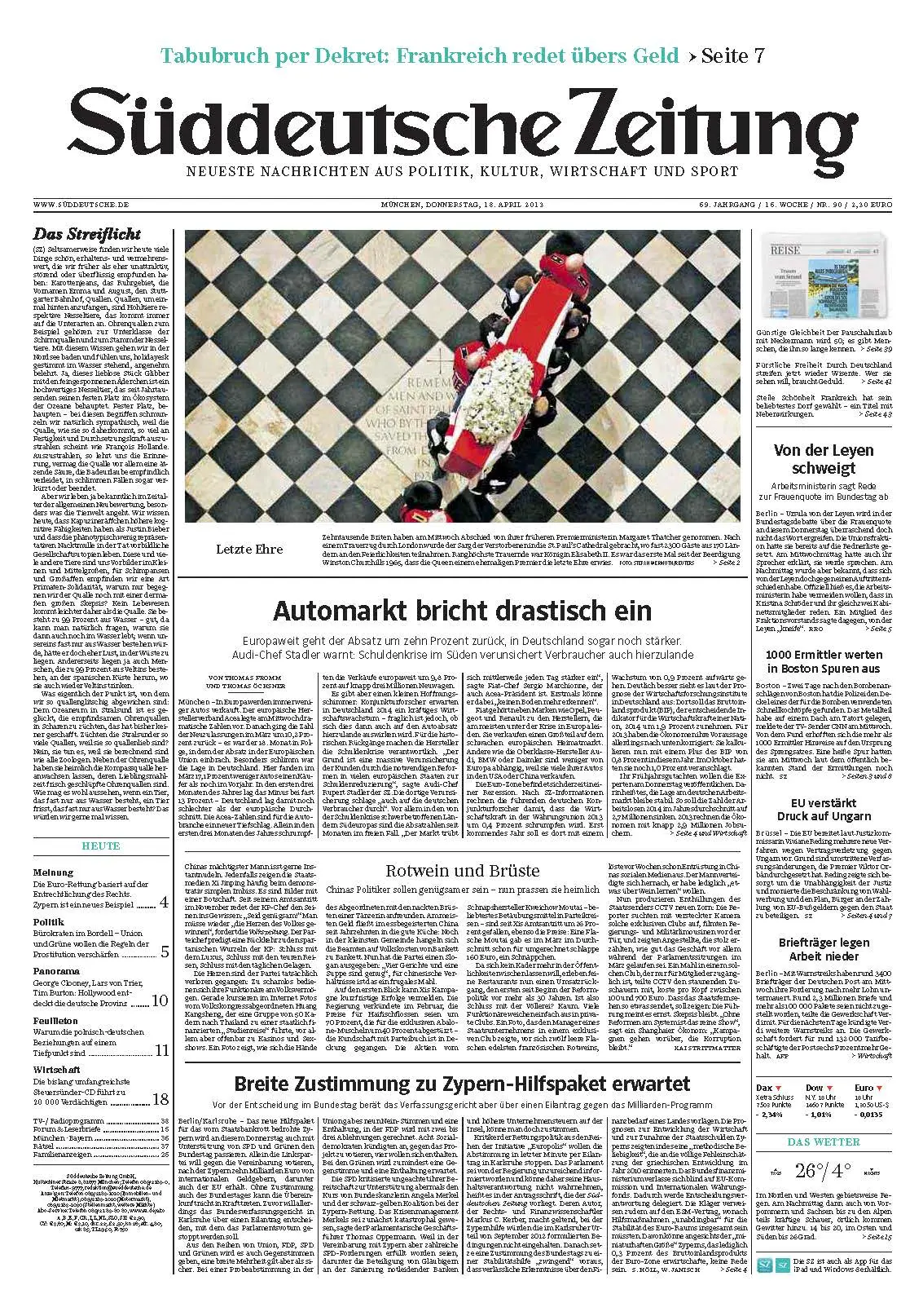 Süddeutsche Zeitung vom Donnerstag, 18. April 2013