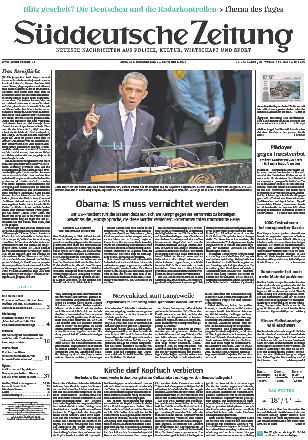 Süddeutsche Zeitung vom Donnerstag, 25. September 2014
