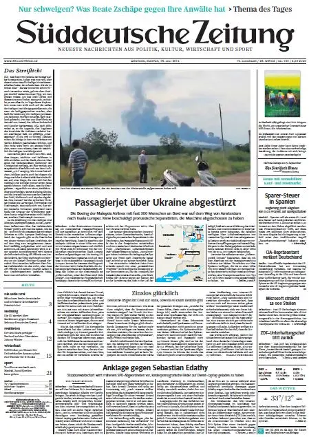 Süddeutsche Zeitung vom Freitag, 18. Juli 2014