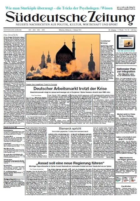 Süddeutsche Zeitung vom Mittwoch, 01. Februar 2012