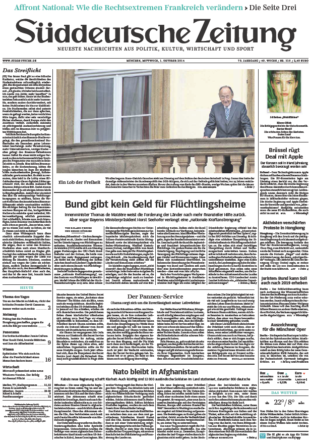 Süddeutsche Zeitung vom Mittwoch, 01. Oktober 2014