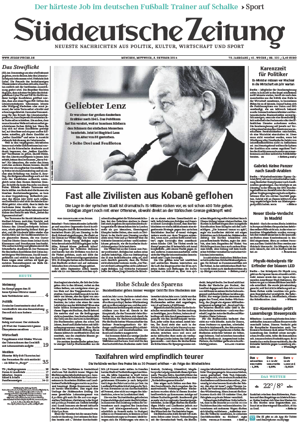 Süddeutsche Zeitung vom Mittwoch, 08. Oktober 2014