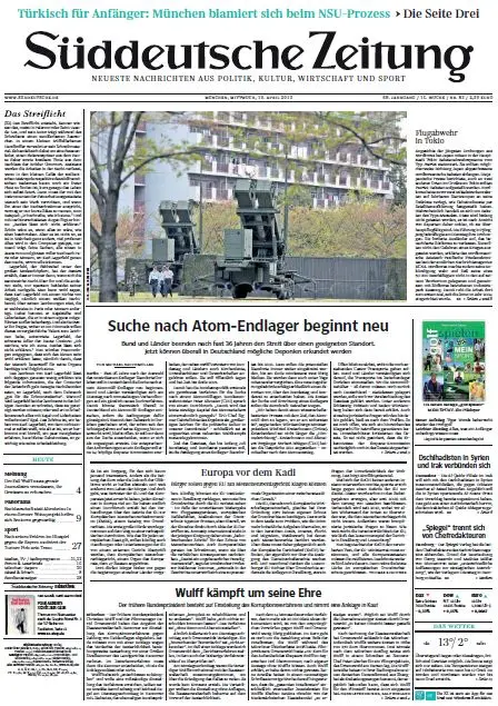 Süddeutsche Zeitung vom Mittwoch, 10. April 2013