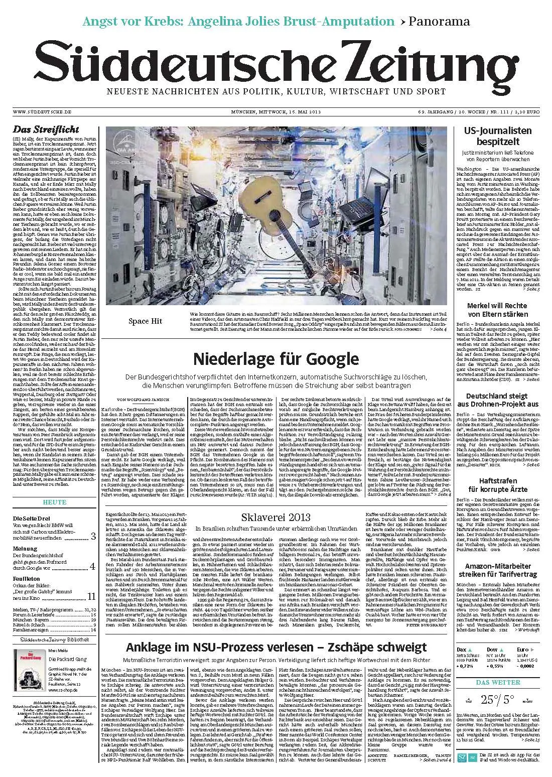 Süddeutsche Zeitung vom Mittwoch, 15. Mai 2013