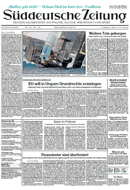 Süddeutsche Zeitung vom Mittwoch, 18. Januar 2012