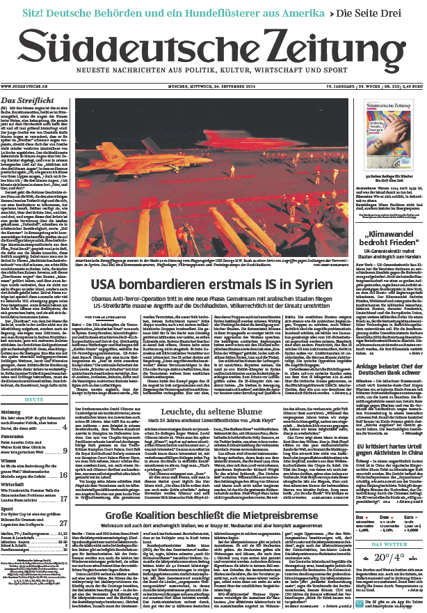 Süddeutsche Zeitung vom Mittwoch, 24. September 2014
